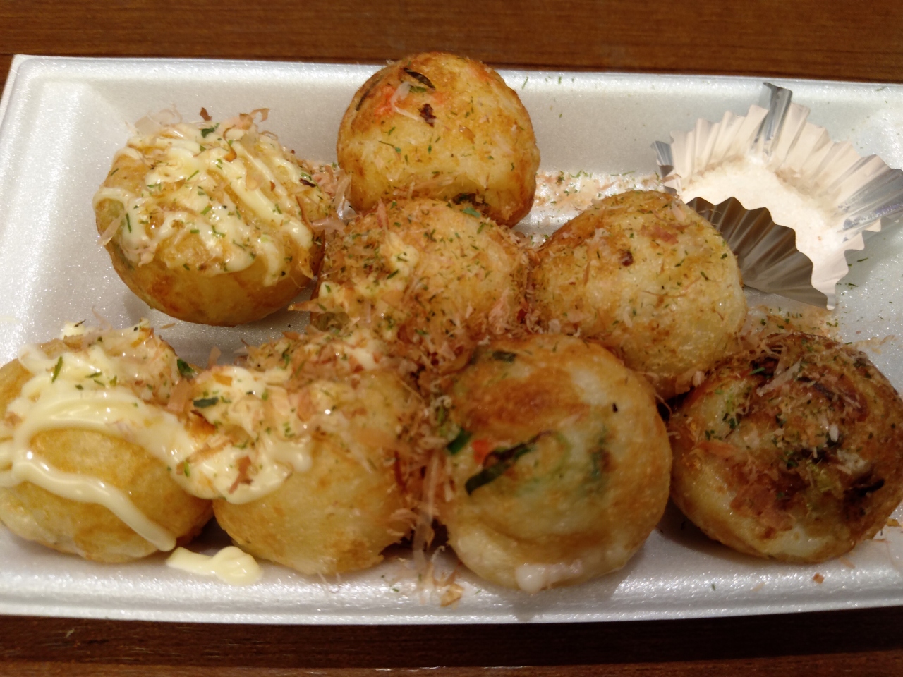 USJの帰りに立ち寄りました。閉じるよりだいぶ前で、パレードの前の時間に帰ったので、平日だしすいてました。入口で券売機でチケット事前購入。味がソースだけでなく、塩とかあり、せっかくなのでお塩に。マヨネーズなどはかけるか選べます。スタッフがかけてくれる。塩はシンプルでおいしい。