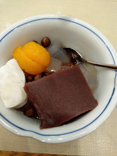 東京駅直結なので便利。ただ東京駅の地下はかなり広いので、はじめてのひとだと、場所がわかりにくいかもしれない。あんみつが有名で、甘味処。あんこがこしあんで、ちょっとどくとく。日曜なので混んでいたらやめようとおもったら、すごくすいていたので、テイクアウトでなくて、店内利用に。まわり2mは人がいなくてよかった。ただそのあと会計してたら満席だったので、時間によるかも。
