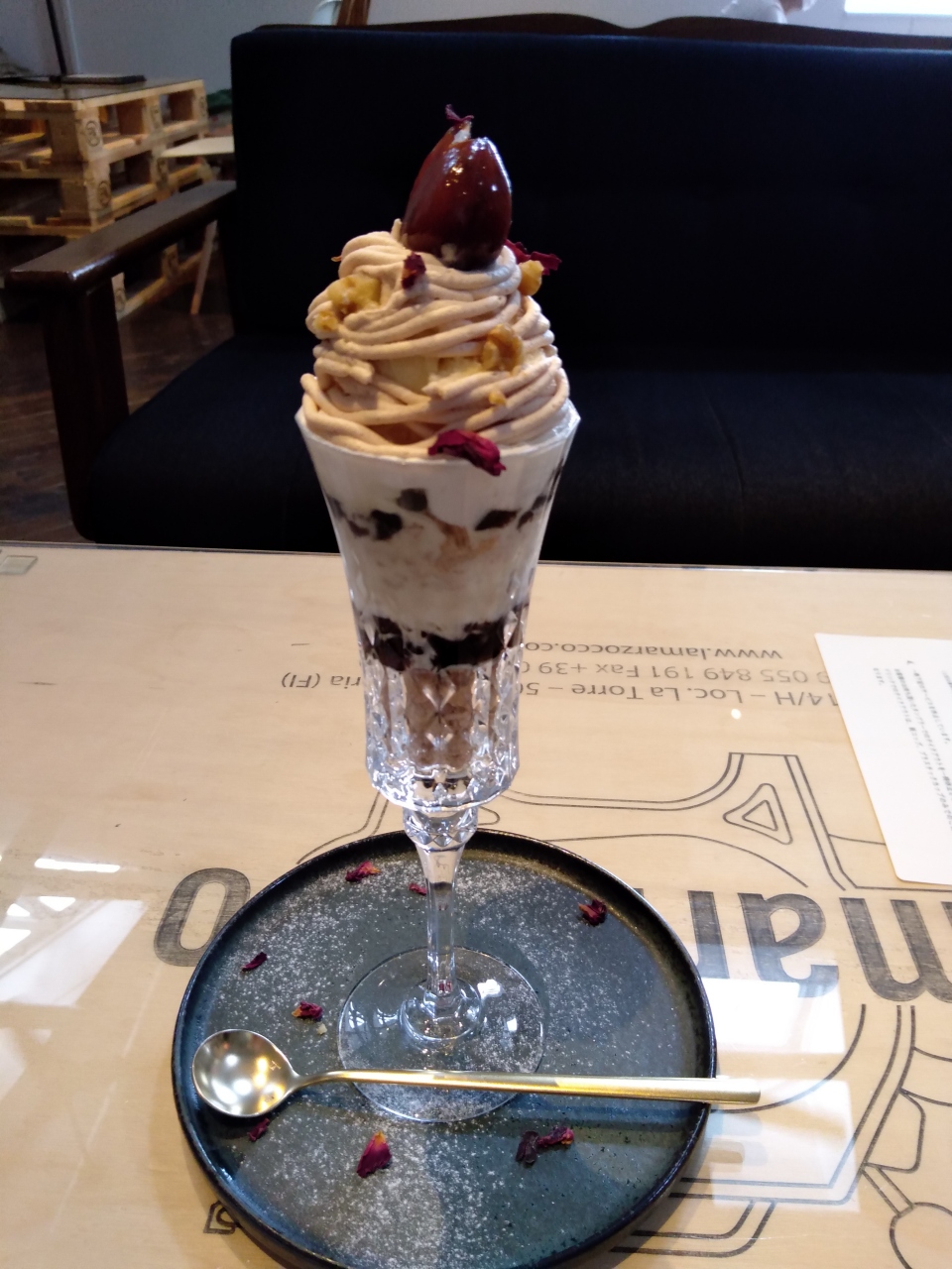 空間がゆったりしていて、ソファー席もあり、素敵な空間。コーヒーやさんだが、コーヒーゼリーとモンブランつかったパフェがおいしかった。大人な雰囲気のカフェ- 旅行時期