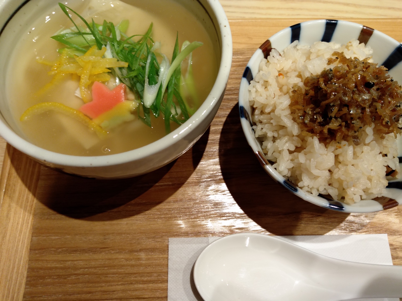 お昼時で訪れました。甘味やさんのイメージがありましたが、ランチセットもやってます。おうどんと炊き込みご飯のセット、炭水化物セットです。3種類あり、ゆばののっているおうどんのセットにしました。あんがとろっとしていて、おだしがきいておいしい。