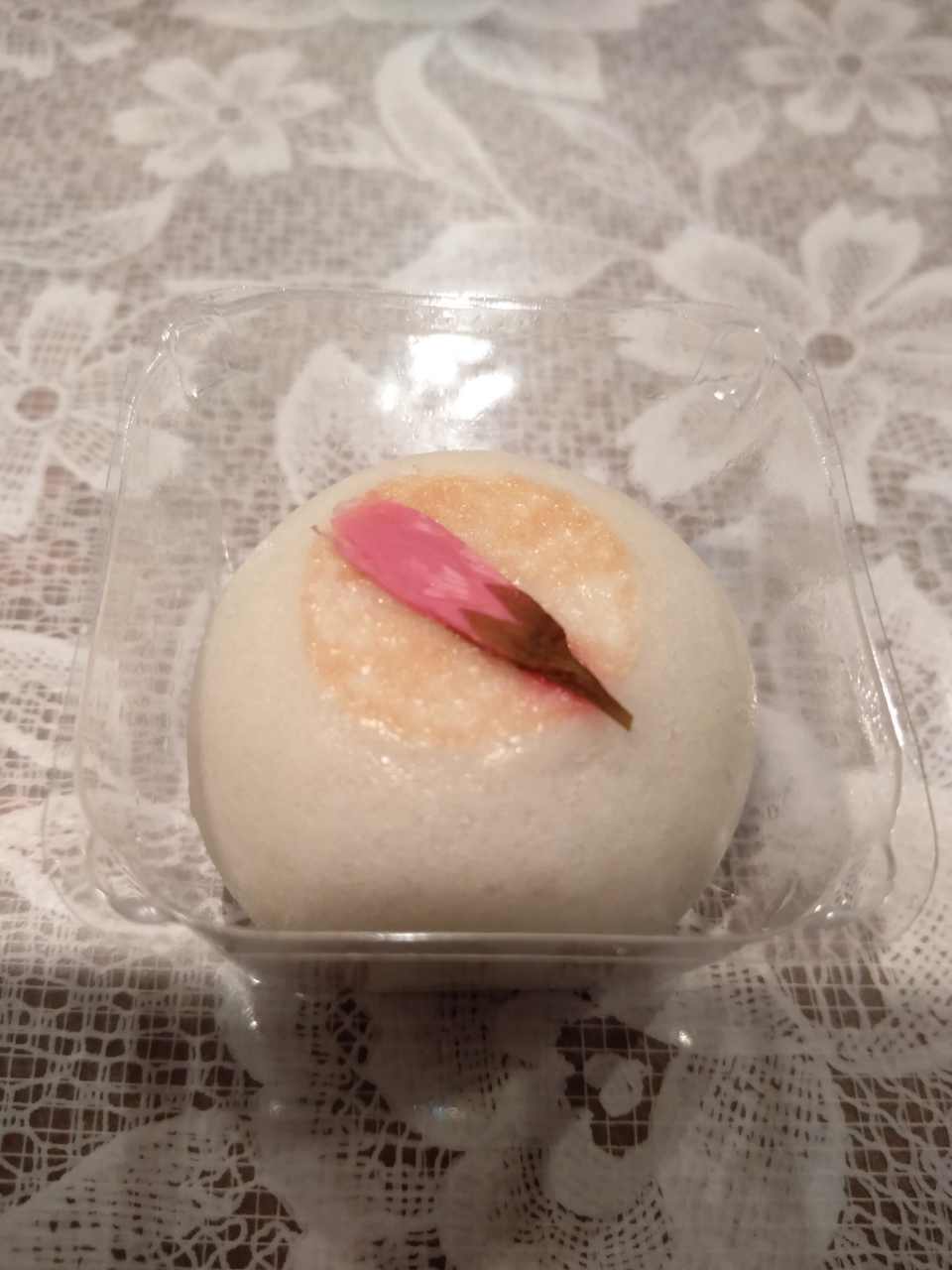 デパ地下の一角にたねやさんはあります。たねや饅頭 さくらをかってみました。お饅頭の上に、ちょこんと桜の塩漬がのっていて、ピンク色でかわいらしい、春らしい和菓子です。春だけの季節限定の饅頭です。わりあい小ぶりで、こしあんの上品な甘さでおいしい