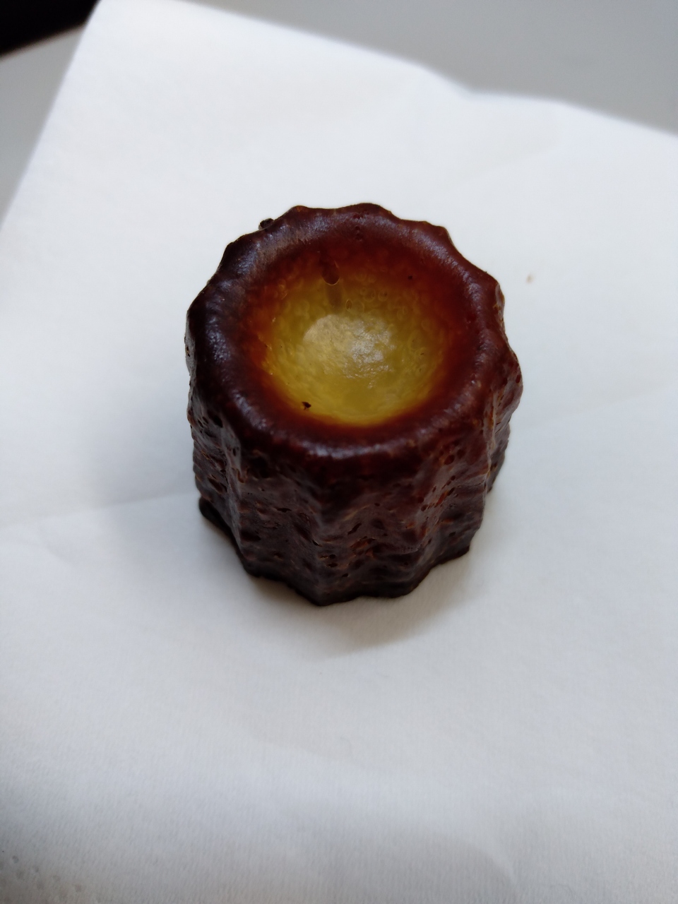 こちらのお店はなんといってもカヌレが有名。カヌレとか全体的にこちらのお菓子は小ぶりなサイズです。でもお値段は小ぶりな価格ではありませんが。実際にみると、プチフールぐらいの大きさです。カヌレは固そうにみえて、なかがやわらかくて、たべていくとおいしいさがつたわってきます。マドレーヌとかも小ぶりですが、おいしい