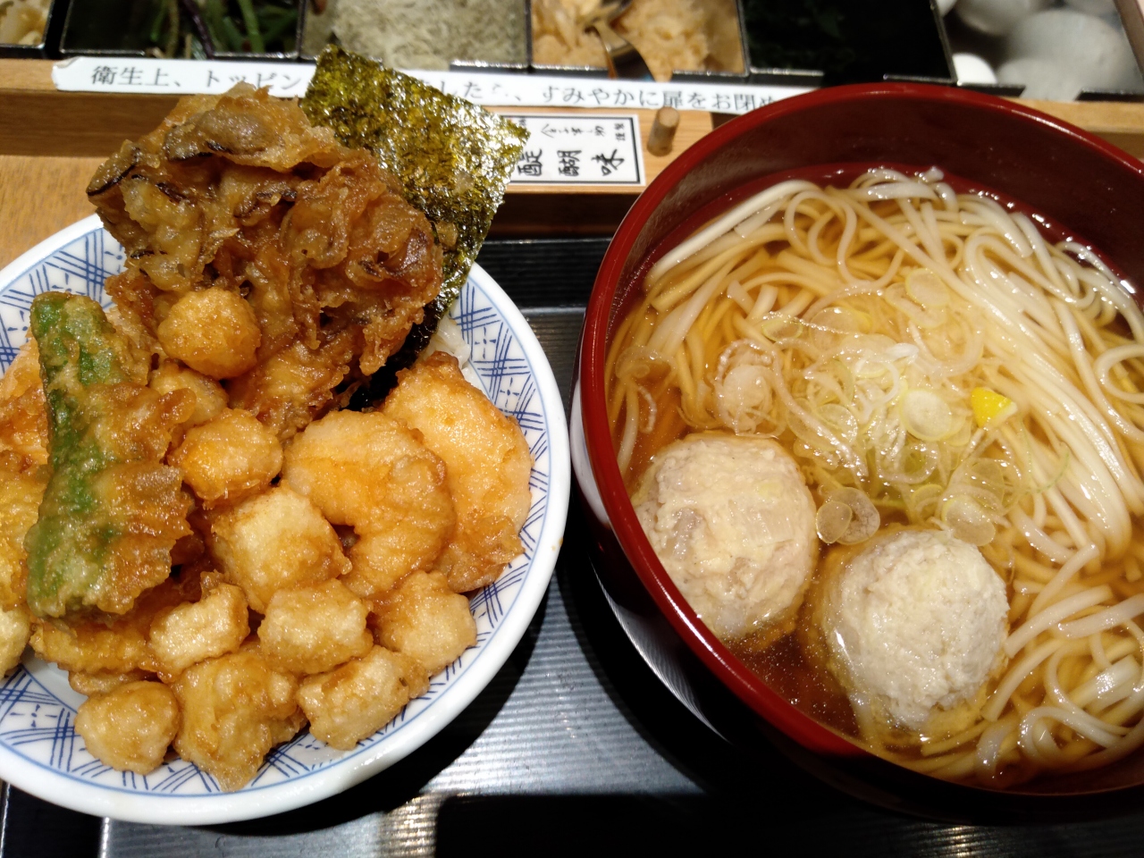 込み合う店舗です。ベビーカーはたたむことになりますし、ベビー椅子などはないです。あと目の前に卵や山菜など蓋をあけると取り放題のボックスが隠れています。そういうのコロナ感染もあるし、触らないでいられるような年齢でくるのがいいかなと思う。コレドはいっぱいお店ありますので!天丼とうどんのセットにしたが、つくね付にしてよかった。つくねかなりおいしい。天丼も小ぶりのようでボリュームあった- 旅行時期