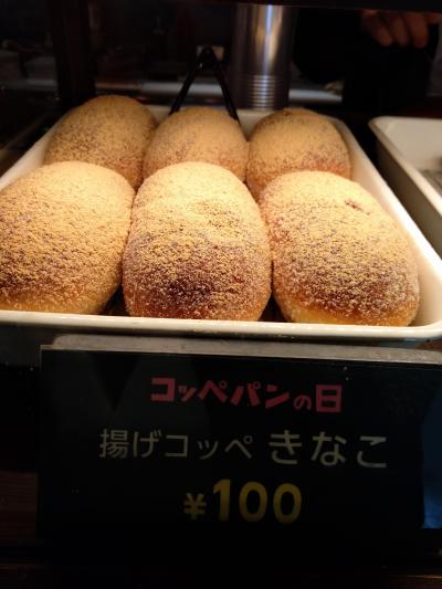 毎月10日は、“コッペパンの日”ということで、大人気の揚げコッペが、なんと100円!!なのです。きなこ、シナモン、シュガーの3つがありました。きなことシナモンを購入。結構ボリュームがあります。どちらもお砂糖がかかっているので、正直きなことか、シナモンをそんなに感じることはなく、ふつうにコッペパンシュガーという感じでした。コロナ感染も考えて店内で飲食せずお持ち帰りに。ちなみに店内はかなり狭いです。並ぶお客さんもいますし食べるなら外の席ですが、いまの季節は寒いですので。