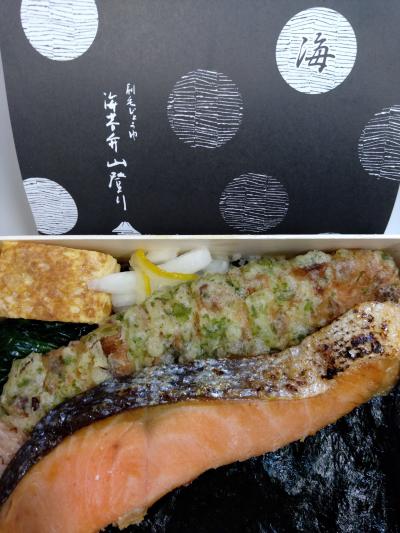 築地市場からちょっと歩いたところにあります。銀行とか飲食店はあるエリアですが、土地勘のない方にはちょっと不便な場所かもしれません。一軒家になっていて、黒色の、お弁当の箱とかと同じような色の建物。お弁当はのりべんとう。海、山、畑など。海を購入。お弁当は冷たいです。出来立てというわけではありません。でもレンジでチンしなくても十分おいしい。(ネットであとでみたら温めないのをお勧めするというのもあったので)海は鮭がすごく大きいのがどーん。小ぶりなようで食べ応えあります。