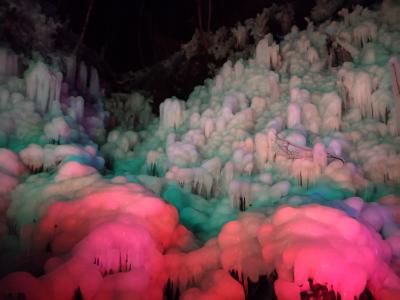 あしがくぼの氷柱は屋外で開催されています。駅からも徒歩で10-15分ぐらい。パーキングも広いです。水をちょろちょろ撒いているようでした。消毒などの徹底、あお入場はQRコードをみせる形で、完全予約制です。人数制限などもされていました。あいにく、雪予報で雨がすごいせいか、雪の降雪注意などもあって人が少なかったです。