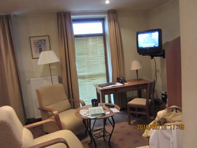 中世の街並みが残るビリニュス通りとメインのライスベス通りへのロケーションが良いので、観光には便利。但し、駅からは遠いので、荷物を持って歩くなら30分は覚悟した方がいいかも。バスを使えば、10分弱で近くのバス停に着きます。そこから歩いて7分程度で付きます。ホテルの周りは暗くてちょっと怖いですが、夜中でもほぼ安全です。