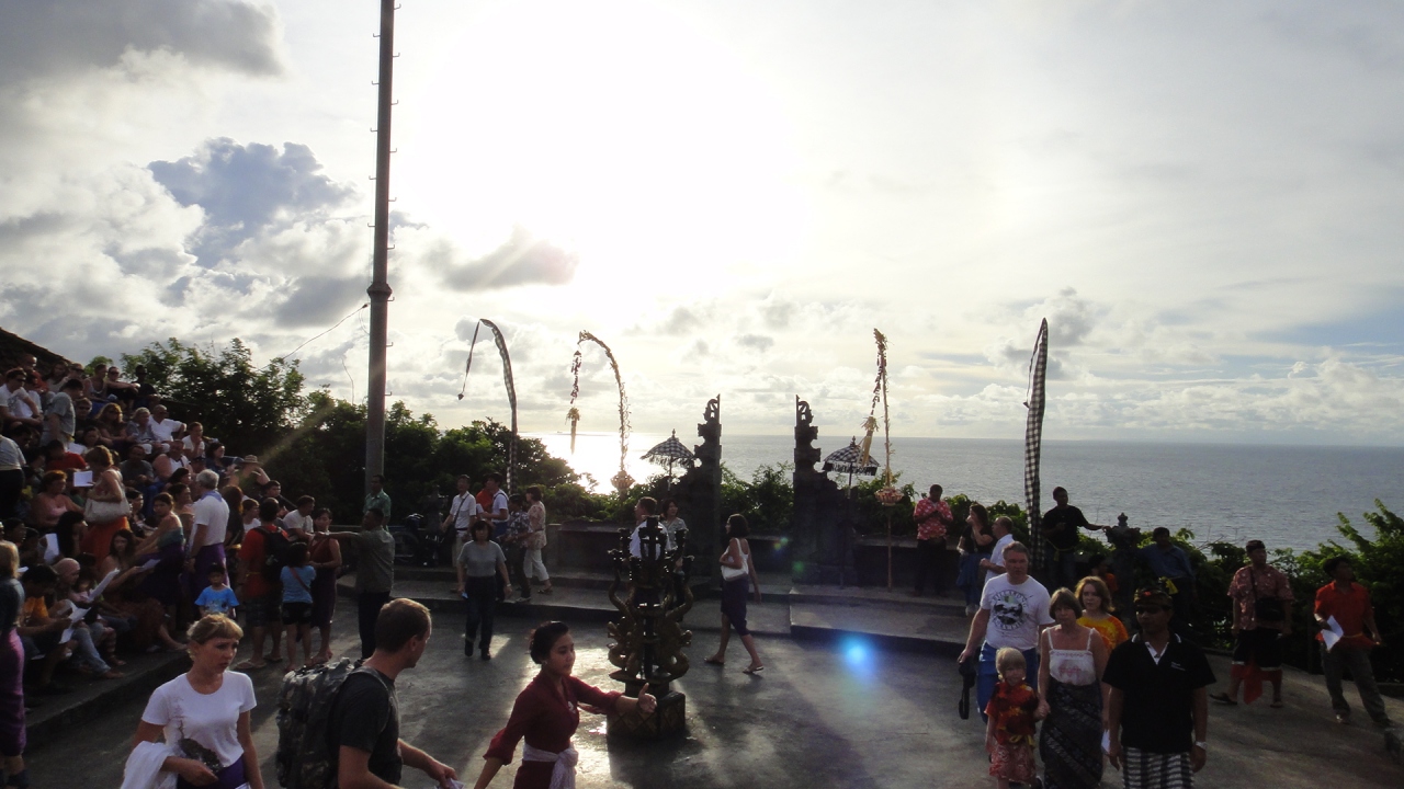 ケチャックダンスは18時から19時までですが、17時半くらいにいって上のほうの真ん中あたりに席をとったほうが、ウルワツ寺院も、ケチャックも夕日も一緒にみれてお得です。