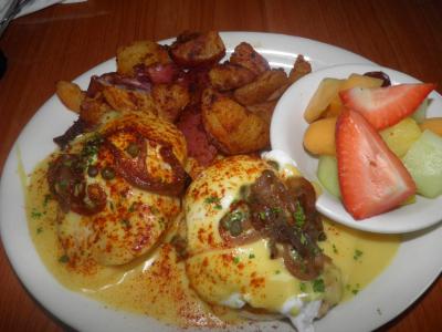 モーニングセットのエッグベネディクトと、ハンバーガーと飲み物を注文しました。