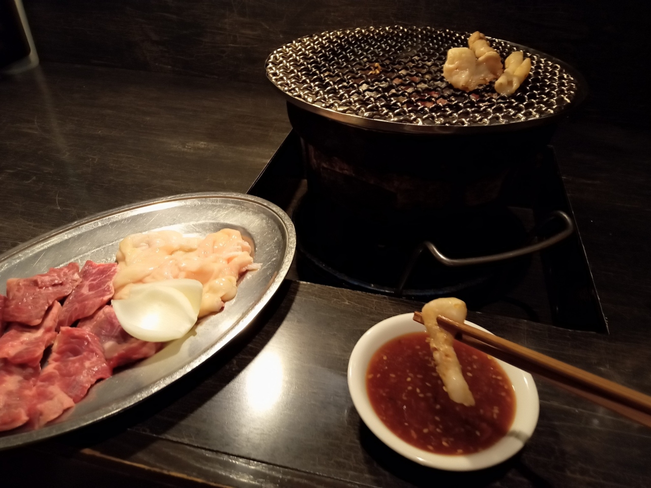 焼き肉の街、北見で代表するホルモン屋さんです。本当は、ぼんち鍋をいただきたかったのですが、事前予約と言うことで、ぼんち鍋はこの次にしましょう。まずは、店名にもなっているホルモンから。臭みの無い丁寧に処理されたホルモンです。タレもおいしく最高です。さらに、さがりカルビも注文しました。量も多く、さすが焼き肉の街という感じです。やはり網で焼く焼肉はおいしいですね。ビールもすすみ、最高の時間を過ごせました。