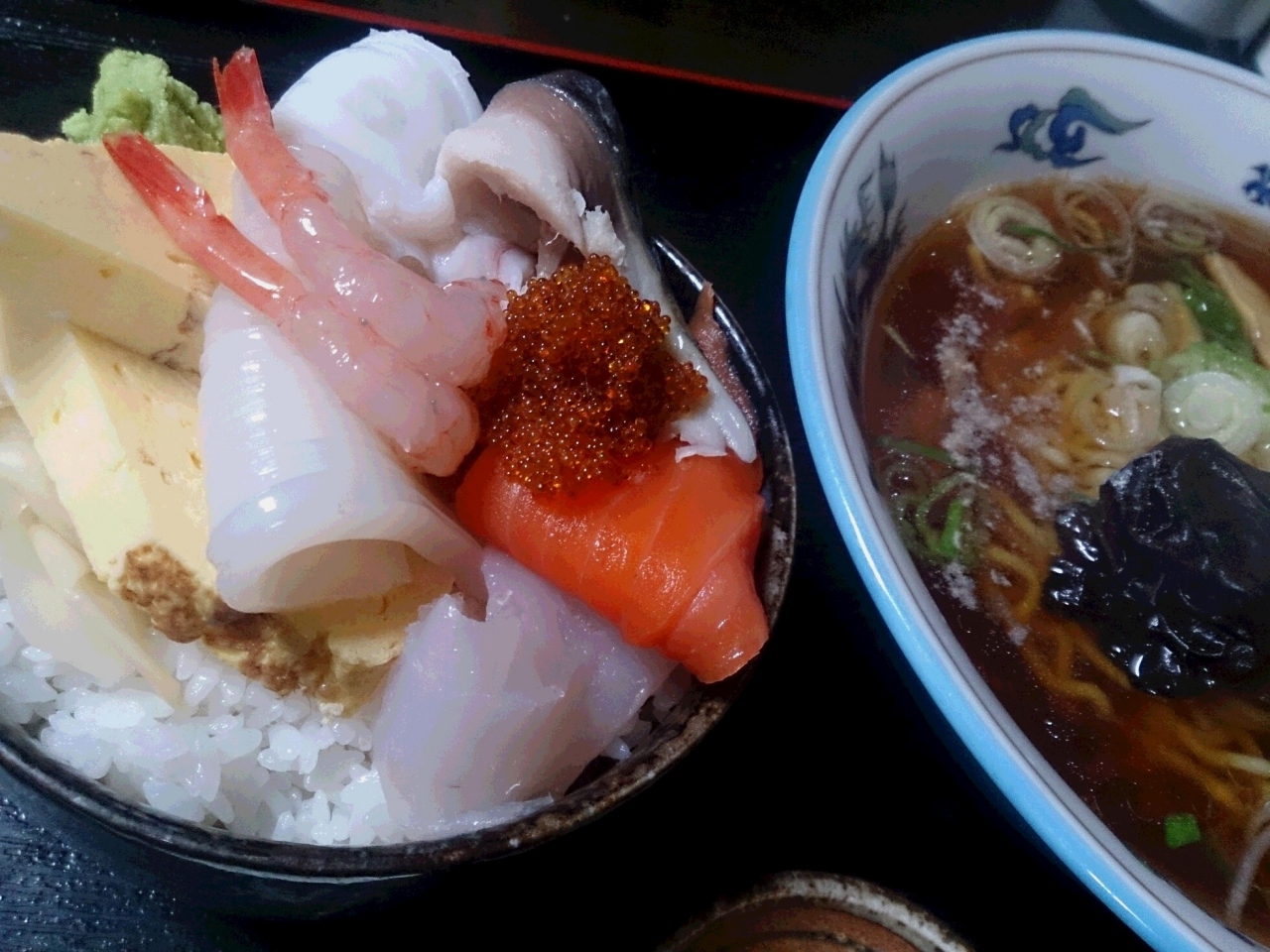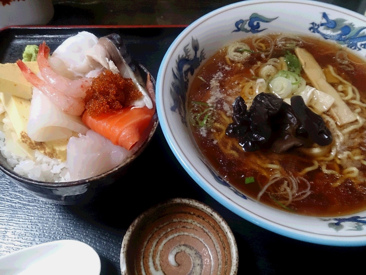 留萌でコストパフォーマンスのいいお寿司やさんです。海鮮丼やかき揚げ丼の盛が良いことで人気のお店です。この時は、ラーメンと海鮮というミスマッチのセットがありました。これが実に合います。海鮮のさっぱりした丼にお吸い物も代わりのラーメン。ボリュームがありすぎなのですが、意外と食べられました。本業はお寿司屋さんのですが、居心地の良いお寿司屋さんです。以前も訪れたことがあるのですが、何度訪れても、満足するお店です。
