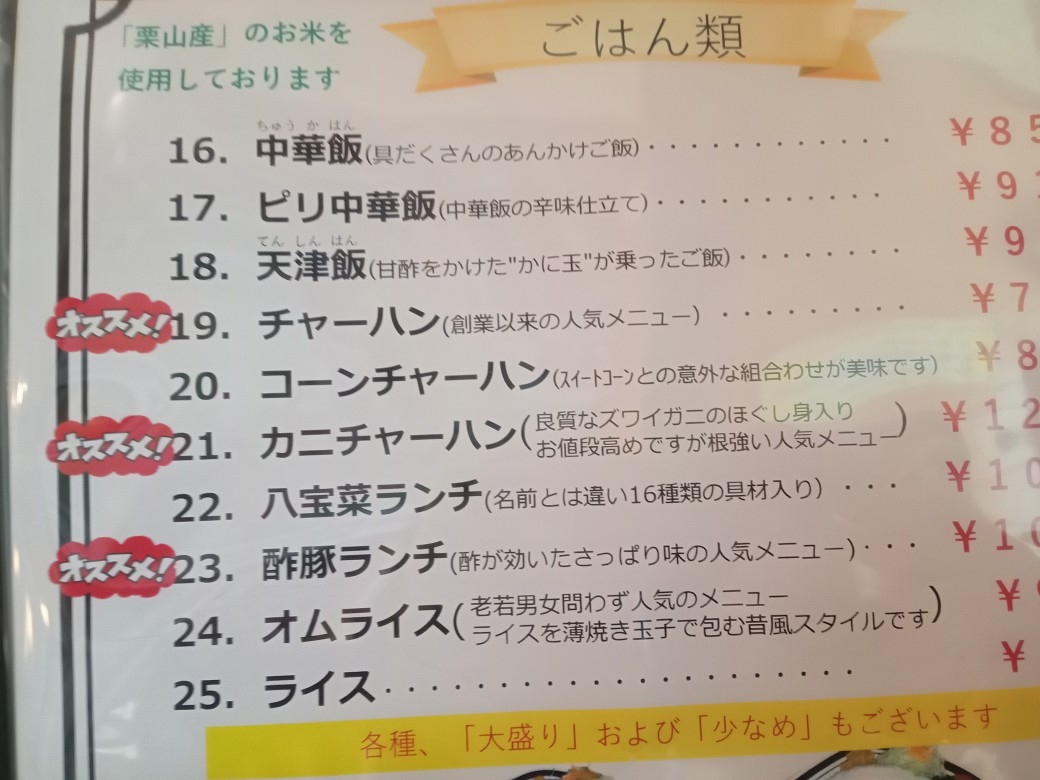 栗山町を訪問して昼に入った食堂です。「はらへー太」という名前だけあって、ボリュームのあるメニューがそろいます。しかも安いということで昼時はサラリーマンや家族連れでにぎわいます。どれにしようか迷いましたが、チャーハンにすることにしました。10分ほどしてチャーハンがきました。パラパラした中華料理店で出てくるような本格的なチャーハンです。スープもついてきてとてもおいしくいただきました。店内には、侍ジャパンの監督、栗山英樹さんにサインユニフォームが飾られていて、そういえば栗山監督は栗山町に住んでいたなと思い出しました。