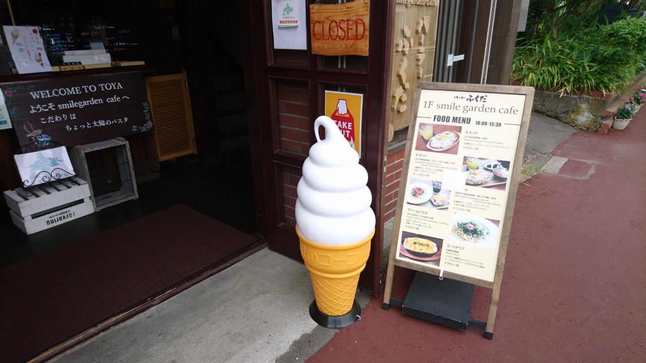 洞爺湖温泉街で見つけたおしゃれなカフェです。温泉街を歩くといろいろなお店があって、気になるのでついつい立ち寄ってしまいます。このカフェは、焼きカレーやパスタがおいしいようですが、悲しいかなおなかはいっぱいです。そこでコーヒーだけいただくことにしました。酸味のあるコーヒーで一息入れるのには良いです。しかし、わずか200メートルほどしか歩いていないのに、すでに3件のお店に立ち寄っています。次は、どこに行こうか、コーヒーを飲みながら考えます。