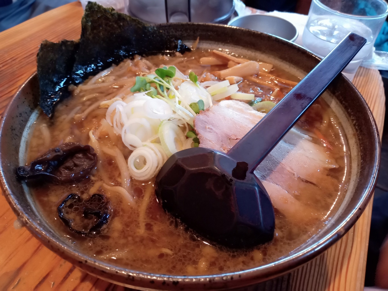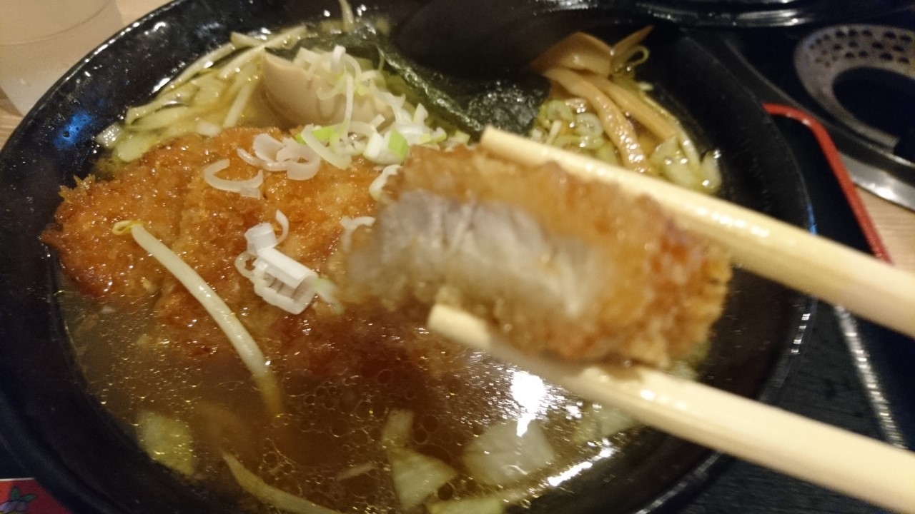厚真町でお気に入りのお店です。焼肉屋さんのですが、ラーメンや丼物があります。しかし、そこは焼肉屋さん。必ず肉が絡んでいます。この日は、ラーメンにしました、とんかつ入りの。やってきたラーメンの上には、分厚いとんかつが鎮座しています。スープがしみ込んだとんかつは、とてもおいしいものでした。ラーメンとの相性も良く、とても充実したランチタイムになりました。
