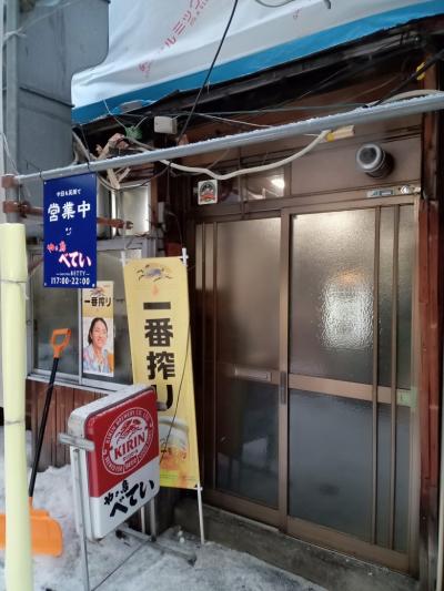 今回で3度目か4度目です。旭川に行くと、必ず立ち寄るお店になりました。ここは「ふらりーと」と呼ばれる古い小路の中ほどにあります。いつ行っても混んでいるのですが、常連さんが詰めてくれて、いつも座れます。早速、焼き鳥とチャップ焼きを注文しました。チャップ焼きとは豚肉をケチャップと醤油のタレで甘辛く焼いたものです。こおに来るといつも日本酒。ご機嫌になったところで、はしご酒の始まりです。始まりはいつもここです。