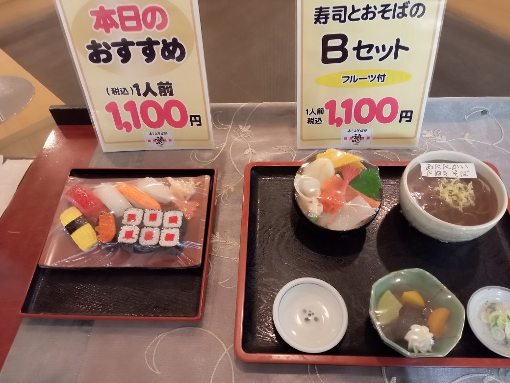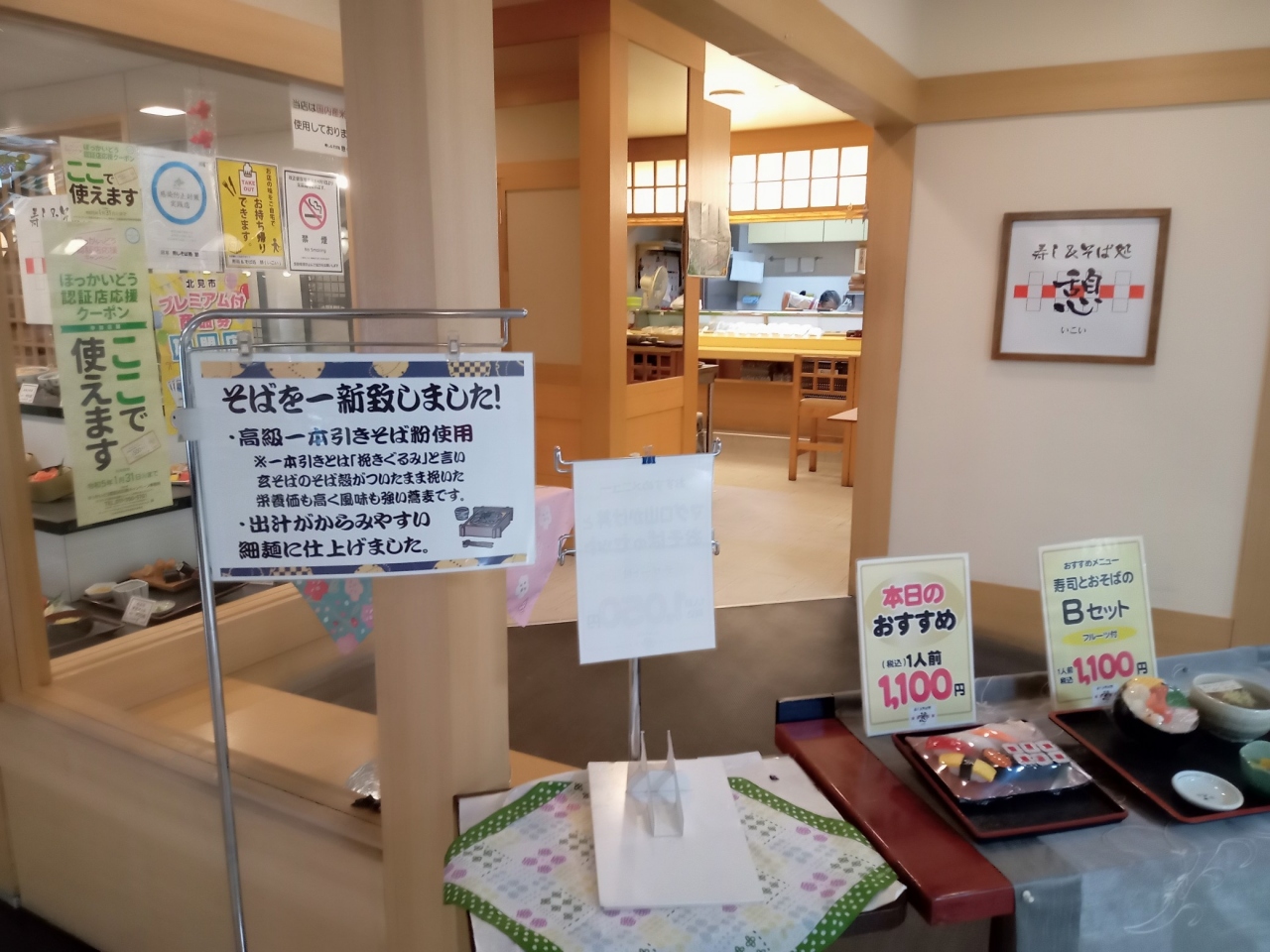 JR北見駅の隣のビルにあります。昔の華やかなりしころの面影は、少しあります。しかし、今はありません。その代わり、ここに入っているお店で、おすすめのメニューを表示しています。この日は、お蕎麦屋さんのこちらのセットメニューにしました。たいへんおいしくいただきました。