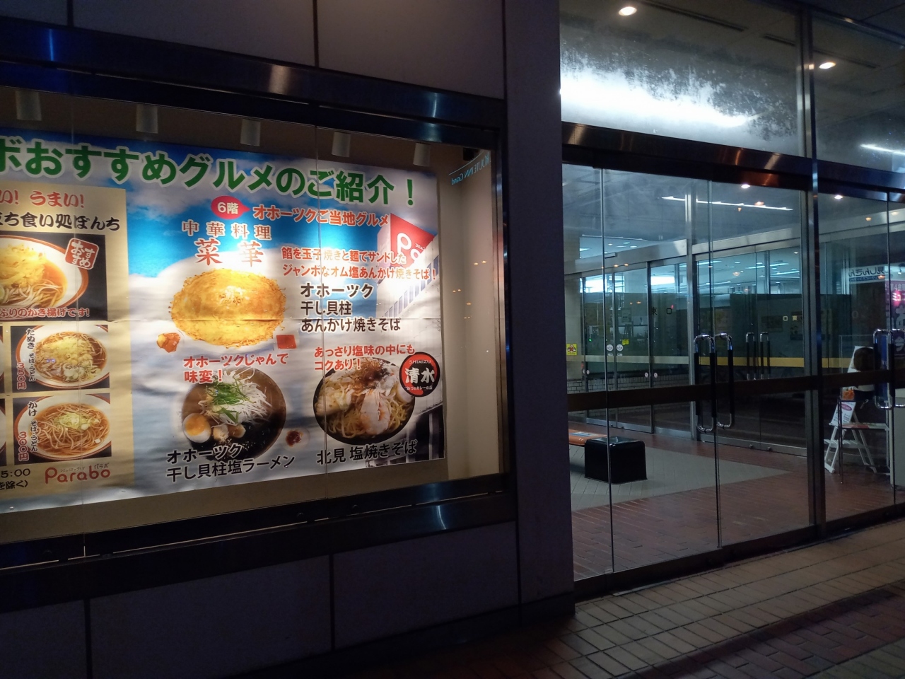 JR北見駅の隣にある商業施設です。以前は、東急百貨店でした。しかし、その東急百貨店も撤退し、今は市の窓口などが入っています。釧路にや旭川にも撤退した商業施設を行政が譲り受けているケースはありますが、どれも寂しい限りです。ここの地下の食料品売り場や上の方のレストラン街は、残っていますが、どこも閑散とした感じは否めません。JR北見駅の隣という立地の良さを生かして頑張ってほしいものです。