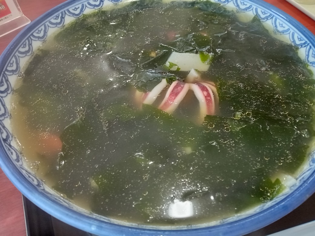浜チャンポンで有名なお店です。前回は、あんかけ焼きそばをいただいたのですが、浜チャンポンが気になって仕方なかったので再度、訪れました。注文したのは、当然、浜チャンポンです。前回、浜チャンポンを頼んでいた人のを見ると、すごいボリュームだったので。お腹をすかせてきました。丼の中に、たくさんのワカメにイカが一杯のっています。さらに、カニの爪にエビやらホタテやらたくさんのっていました。スープは、あっさり塩味で海の幸が一番おいしくいただける味付けになっています。イカを食べただけでお腹が、いっぱいになりましたが、頑張ってなんとか全部いただきました。とてもおいしかったです。また、伺います。