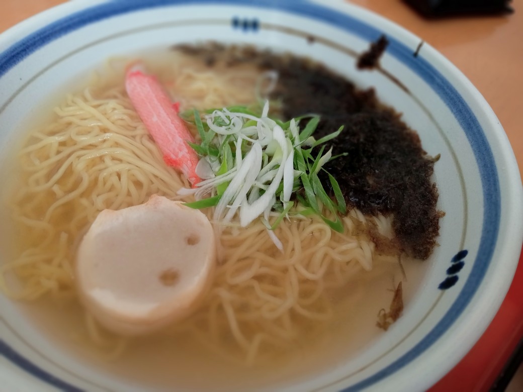 岩内町のほぼ中心部にあるストランデス。一般の住宅のようなたたずまいで、最初はわかりませんでした。しかし、人気の食堂のようで店内は混雑しています。観光客と地元の人が混じっていたので、どちらからも愛されていることが伺えます。メニューは豊富で、いろいろ悩んだ末に塩ラーメンにしました。運ばれてきたラーメンは、澄んだスープに海苔が入っていました。そしてズワイガニも。かまぼこではありません。1本ですが本物でした。スープはまろやかで飲み干せました。雰囲気も良くおいしい食堂でした。