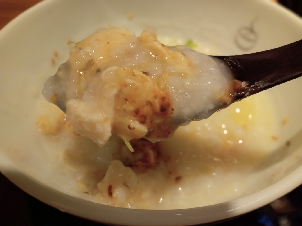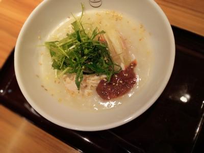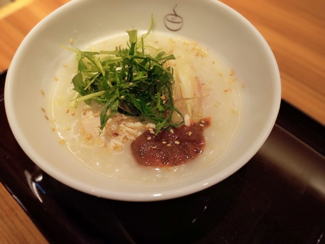 JR札幌駅に直結したレストラン街にあるお粥と麺の専門店です。人気店でいつも混んでいます。この日は、人気NO1というメニューは豊富で、時々季節のものも登場し、飽きの来ないお店です。蒸し鶏とみょうがのおかゆ梅味仕立てにしました。さすが駅に近いお店だけあってすぐに出てきました。あっさりしたおいしいお粥です。スープのベースは鶏でしょうか。それに蒸した鶏の肉とアクセントのみょうががのっています。けっこうボリュームもあります。それでもお粥なのでカロリーは控えめです。食べ終わるころには、心も体もあたたまりました。