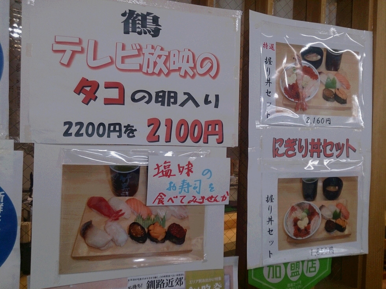 釧路の飲食店街にあるお寿司屋さんです。門構えでわかるように、釧路で一番のお寿司屋さんです。おいしいし、見た目も美しいのですが、予算は少し多めに取ったほうが良いです。昼の営業はなく、夜専門のお店なので遅くまでやっています。ネタは新鮮で、おいしいです。見た目も、美しく高級感があります。