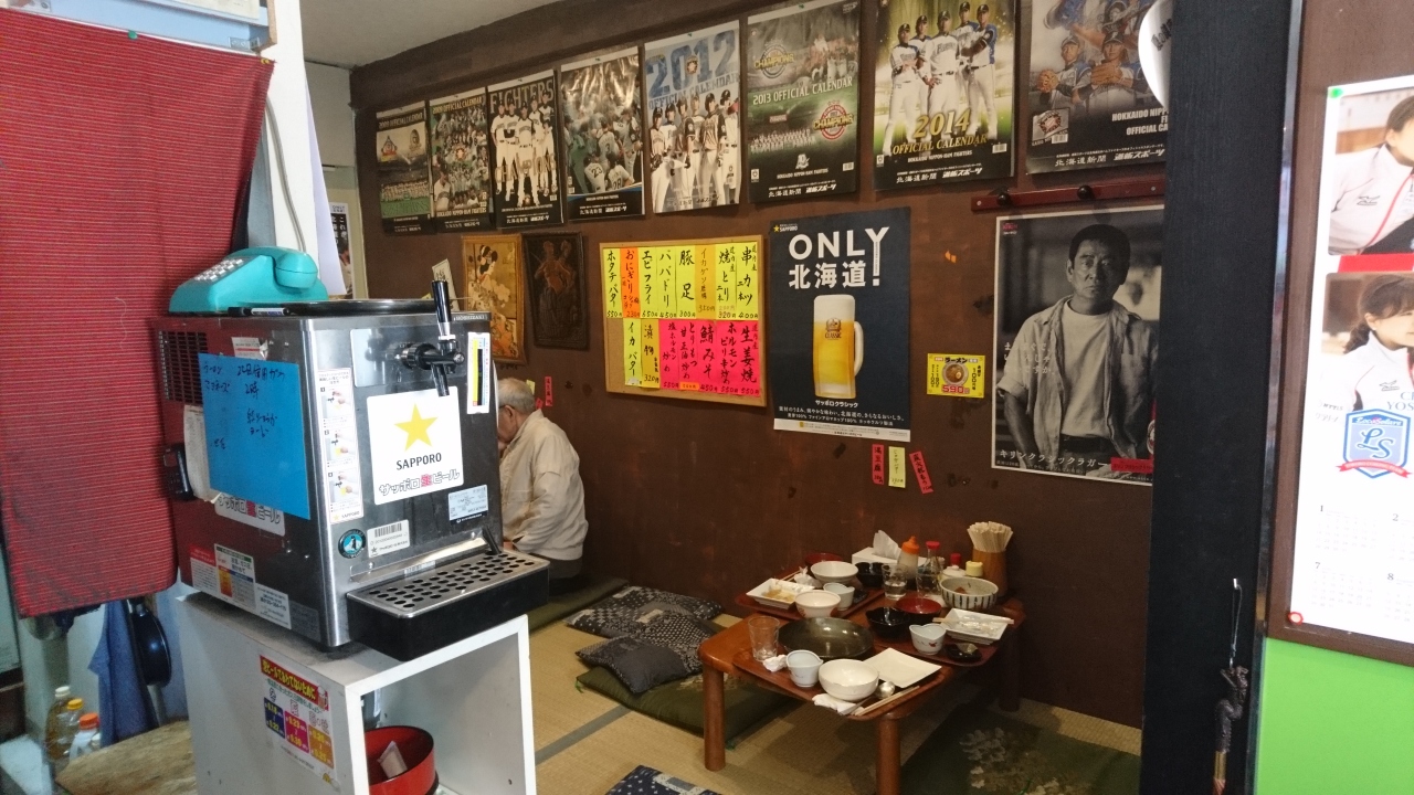 北見のB級グルメといえば、北見塩焼きそばです。そのご当地グルメをいただくため、入りました。どうやら本業は居酒屋さんのようです。ご主人とおかみさんの二人でやっているので、忙しそうです。観光客も多く(私も観光客だが)本当に忙しそうです。お目当ての塩焼きそばを注文しました。焼きそばの上に地元北見の常呂で取れた大きなホタテがのっています。ホタテに並ぶ地元の特産、日本一のタマネギが甘さを引き立て美味しかったです。今度は、夜にも来たいと思うお店です。