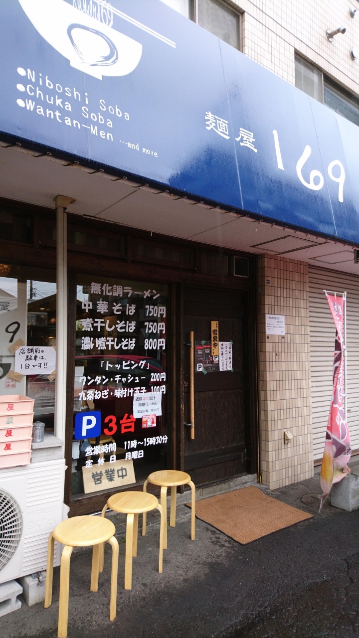 国道230号線と電車通りの間にある通りにあります。店名の「169」は南16条西9丁目にあるからです。そういう店名は、意外と便利ですね。肝心のラーメンですが、これが絶品!札幌ラーメンと言うとトンコツのガツンとくるイメージですが、ここのラーメンは煮干しがきいていて優しい味です。煮干し臭さもなくおいしいラーメンです。マスターは、元和食の料理人だという事で、納得です。私は、味噌を相方さんは醤油を注文。相方さんの醤油のスープをいただきましたが、味噌同様おいしいスープでした。店内は、さほど広くなく、10人も入ればいっぱいになりますが、札幌の新しいラーメンとして人気です。毎週行っても飽きない奥深い味です。