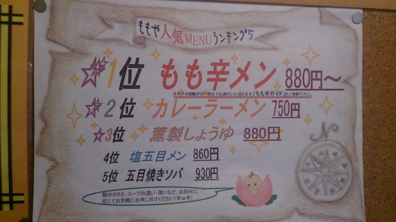 苫小牧と言うと私が思い浮かべるのはカレーラーメン。まぁ、辛いラーメンですね。ここ、ももやさんの辛メンには、大変感動いたしました。つまり、たいへん辛うございました。出てきた辛メンは、さほど辛いようには見えませんでしたが、一口食べると、もう汗が止まりません。辛いですが、コクがあるスープで病みつきになりそうです。場所は、苫小牧の日翔病院向いのマンションの1階です。あなどれませんな、ももや。辛いものが、苦手な人はやめておいた方が良いでしょう。