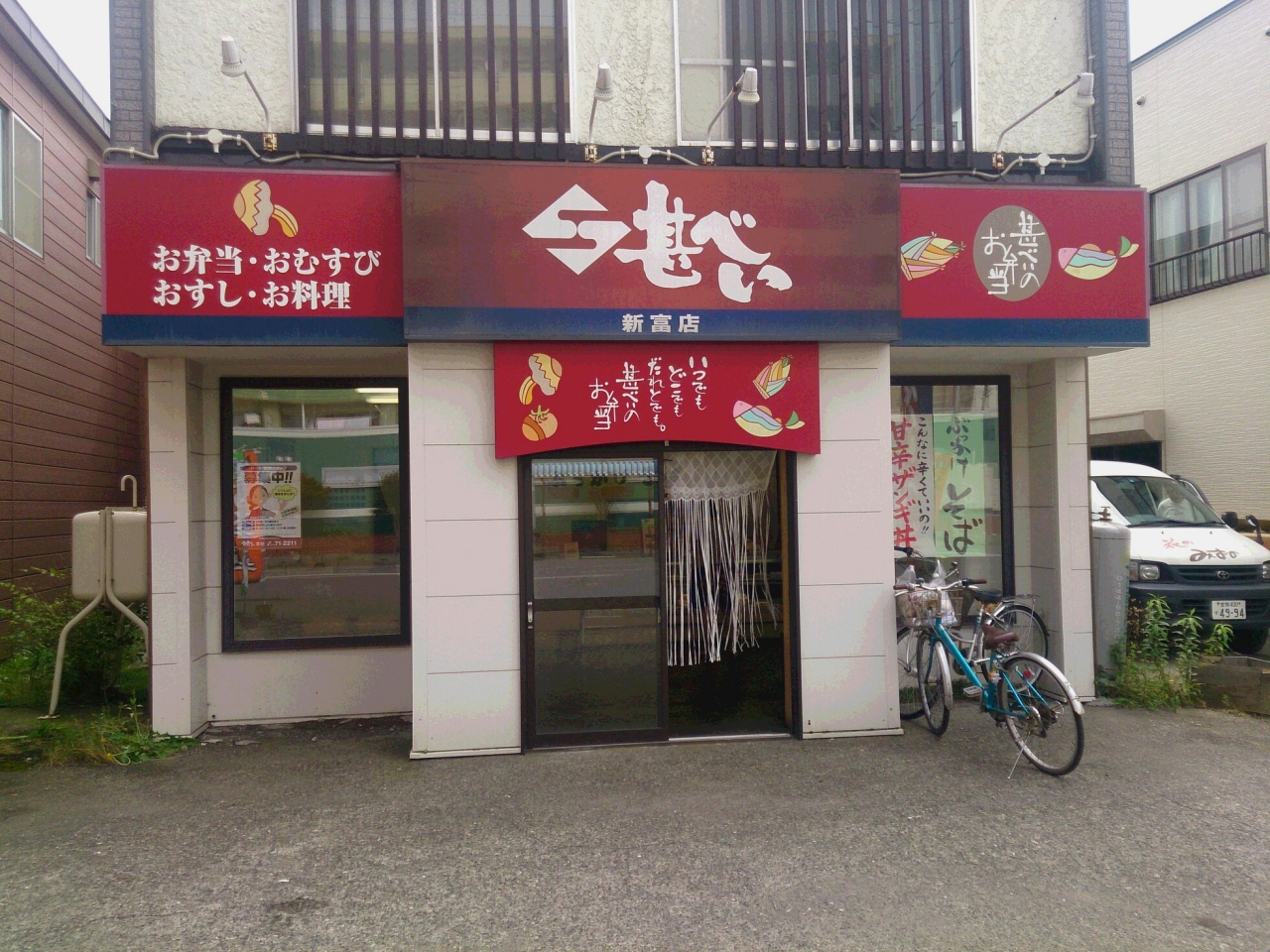 苫小牧の住宅地にある弁当屋さんです。甚べいさんは、季節でおかずを変えたり、飽きがこない工夫がされています。そのため、お客さんがひっきりなしに訪れます。肉あり、魚あり、野菜あり。麺類もある時があり、とても充実しています。これが人気のわけですね。ちなみに私は、から揚げが好きです。