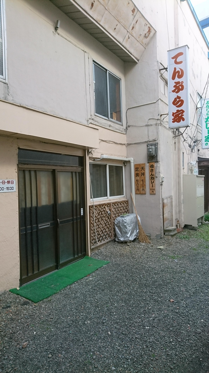 JR岩見沢駅から歩いて5分ほどの距離ですが、まず、迷います。場所は、古く寂れたアーケード街のさらにその路地裏にあります。ディープな感じ満載のところですが、ここに天ぷらがおいしい「てんぷら家」があります。メニューは、定食と天丼のみ。天ぷら島ありません。以前、友人に連れて来てもらったとき、いただいた天ぷらがおいしく、肩身ました。するとなんと、開店前。せっかくたどり着いたのだから、少し待ってタワー状に建てられたエビ天丼をいただきます。