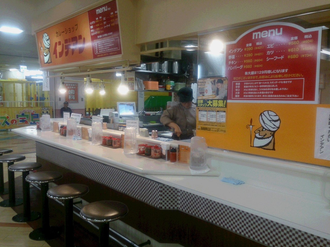 駅前の長崎屋の中にある帯広のソールフード、インデアンさんです。ゲームセンターの隣のフードコートにあります。500メートルほど離れた町中のお店は、混んでいますが、ここは広いフードコートがあるので並ぶことがありません。しかし、町中のお店の店長らしき人が作るカレーと違って、何か違うような気もしました。違うはずはないのに、あの町中のお店の店長らしき人の、リズミカルな動き、これはないですね。でも、カレーの味は、変わりなく美味しいし、持って帰るときも時間はかからず、駅に近い。これは便利です。時間のないときは、おすすめです。