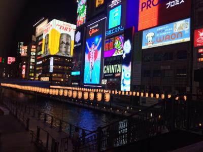 今や大阪名所のグリコのネオン。道頓堀は一度は行く観光地ですね。ここは、人通りも多いですが、必ず同じポーズで写真を撮りますね。通行のじゃまになっても許してくれるのが大阪の人の心の広さですね。良い記念になりました。ここからミナミなどを散策スタートです。