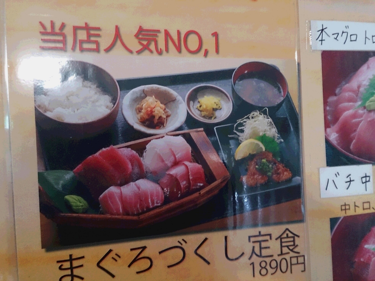 清水駅から歩いて3分、 清水魚市場河岸の市まぐろ館にあります。清水にきたのでマグロを食べたくてホテルの朝食はパスして、ここにしました。清水といえばとにかくマグロ。少し奮発して「鮪づくし定食」をいただきました。厚めに切ったマグロがとろけるようでおいしいです。刺身もおいしいですが、焼いたカジキマグロも絶品でした。朝から海鮮、とても贅沢な1日のスタートになりました。