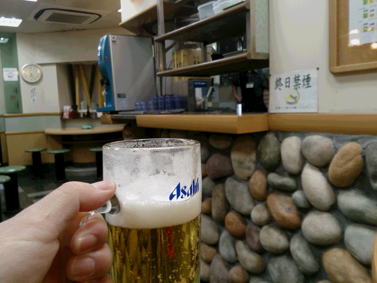 ラクーアに行った帰り、喉が渇いたところに見つけたのが富士そばの「ちょい飲み」。なんと、ビールが240円。缶ビールより安いのでは思うほどの値段です。ここでまず、喉を潤し、どこに行くか考えました。そば屋なので、当然そばを食べながら、飲むのでしょうが、せっかくビールがあるのなら、もう少しおつまみ系が充実していたらと感じました。でも、喉を潤すには、安くおいしいお店でした。次は、おそばもいただきたいと思います。