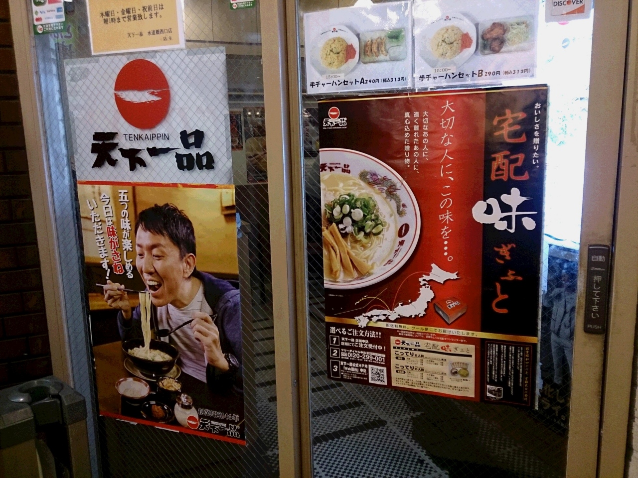 水道橋駅を出て東京ドームと反対方向に行くとある天下一品。なぜ、反対方向の店に?と思うかもしれませんが、東京ドーム方向の店は、どこも混んでいます。比較的すいているのが、反対方向の店。だから、こっちの店に寄ります。天下一品のラーメンといえば、どっろとしたこってりスープが特徴。最初は、違和感がありましたが、今では10日に一度食べたくなります。ドームに野球観戦に行くときは、ここで腹ごしらえしてから行きます。