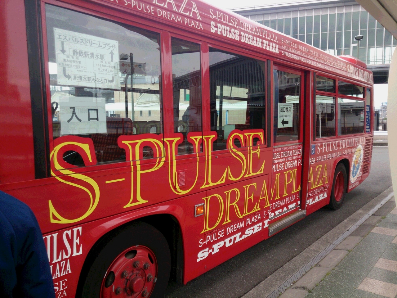清水駅の改札口を出て右の方向へ。階段を下り、右側、東口ににドリームプラザに行くバス停があります。うれしいことに無料です。奥のほうなのでわかりづらいかもしれませんが、何人か並んでいるので、聞いてみると教えてくれます。土日は、15分おきにありますが、早くいくことをおすすめします。