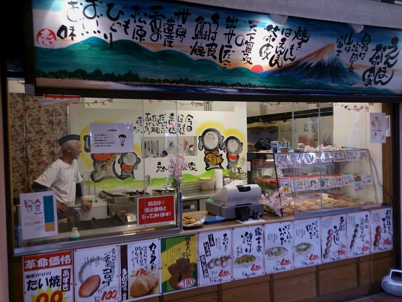 エスパルスドリームプラザのちびまる子ちゃんランドで甘味処みつやを見たせいか、無性にたべたくなるたい焼き屋さんです。たいやきを買いました。定番のあんこと珍しジャーマンポテトを買いました。見た目は、普通の大きさでしたが、ずっしりと重くあんこもジャーマンポテトもぎっしり入っていました。寿司をいただき、ウナギをいただき、さらにたい焼き。おなか一杯の静岡旅行となりました。営業時間は、午前10時から午後9時です。