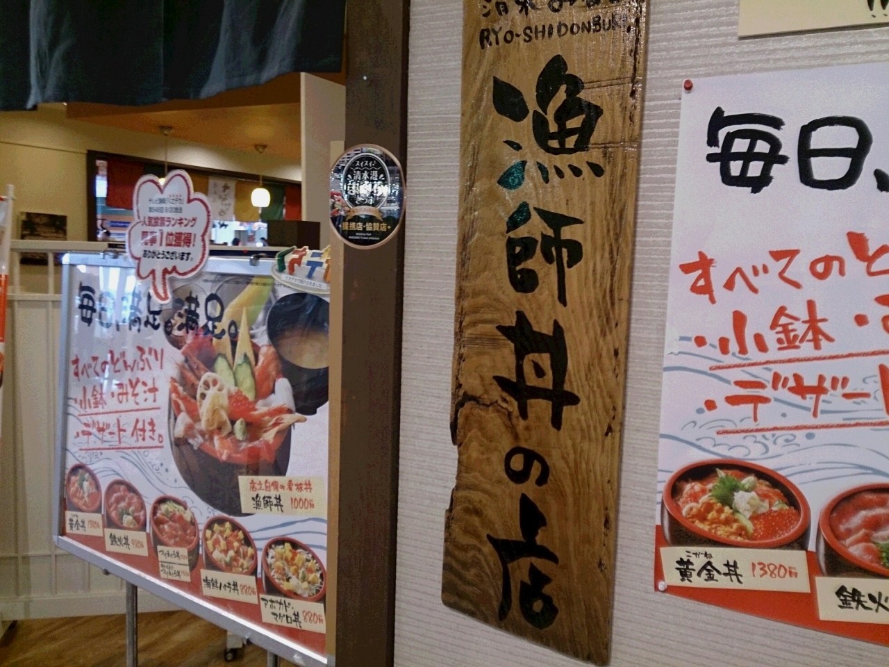 清水市といえば、ちびまる子。ちびまる子ちゃんワールドを足早に見て、お目当ての「漁師丼」の店に来ました。開店の午前11時に入ったので座れましたが、店があまり広くないので、すぐいっぱいになりました。お目当ては、「漁師丼」でしたが、私が「漁師丼」相方が「黄金丼」を頼みました。黄金丼のほうが、豪華かも。それでも漁師丼もおいしかったです。場所は、エスパレスドリームプラザの1階にある「清水すし横丁」の中です。人気店なので、時間に余裕を持っていくことをおすすめします。