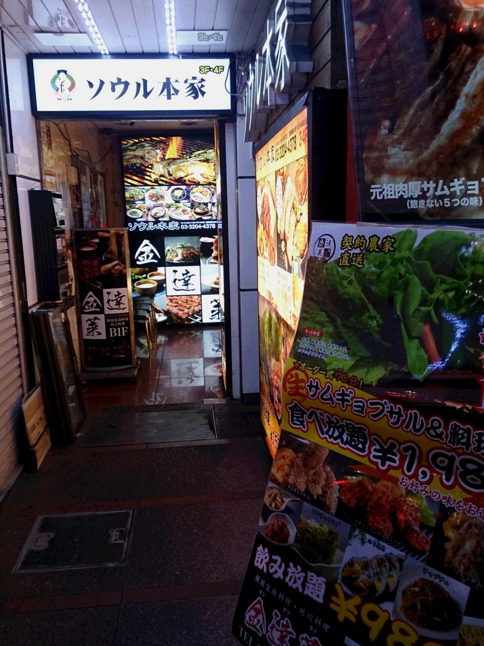 新大久保駅から歩いて3分、この辺は韓国料理のお店が多いですが、その中でもおいしく、値段も安いお店です。絶品は、「燻製蜂の巣サムギョプサル」。これは、外せません。これに、海鮮チジミやイカ炒めなどが付いたセット、2980円を注文。これに、ブルコギ石焼ビビンバも注文したので、大変なことになりました。ボリュームがありすぎ。