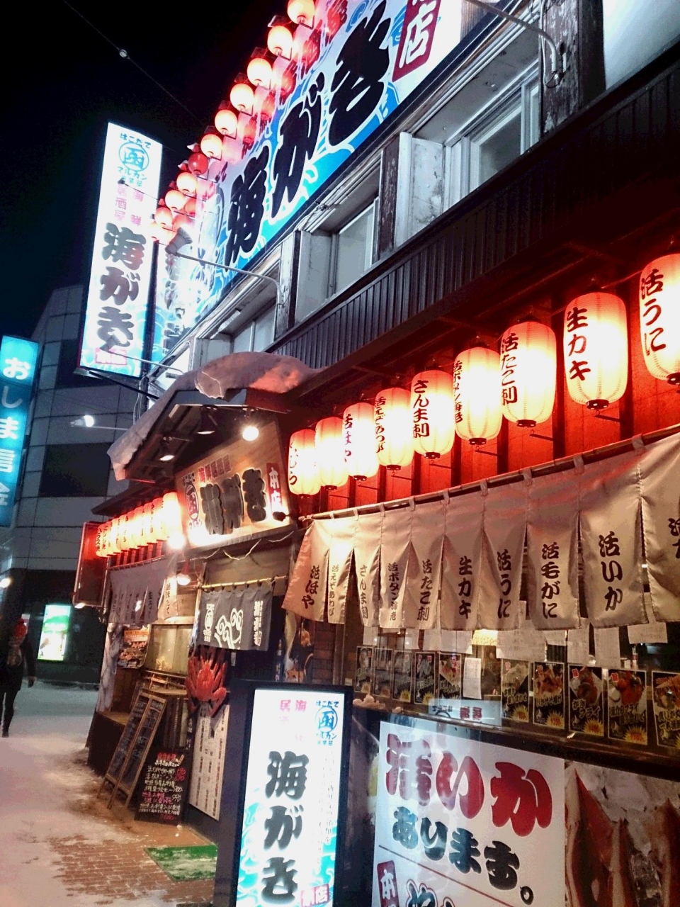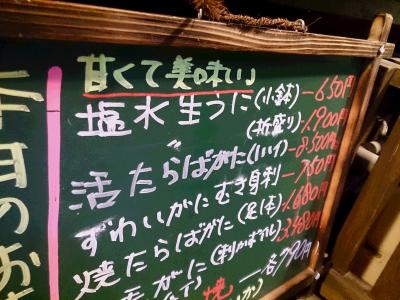 函館に来たら、やはりイカ。普通、イカ刺というと種類は気にしませんが、函館は「マイカ」「ヤリイカ」など種類を提示して季節ごとに種類が変わります。そして、この店には、「ホッケ」や「アブラコ」と普通、生では味わえない魚も刺身でいただけます。さすが函館、さすが漁港直送。深夜12時頃までやっていて、ゆっくり函館の海産物が味わえます。