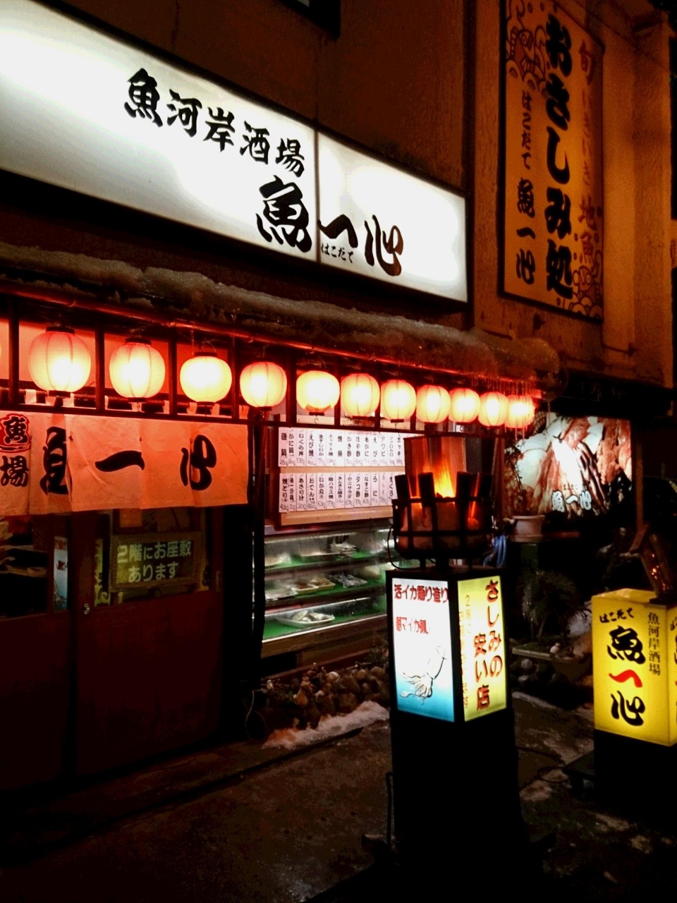 函館の屋台村にあるお店です。入り口近くで見つけて入ったのがこのお店。七輪で魚や貝を炙っていただけます。これだけでおいしさ倍増ですね。以前、釧路で炉ばた焼きをいただいたのを思い出しました。雰囲気があって最高です。お酒も進みます。冬は、炭火を見るだけでホッとします。冬の函館のはピッタリのお店です。