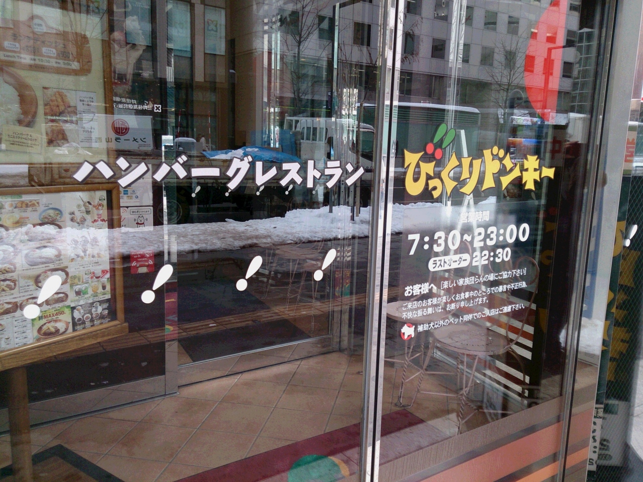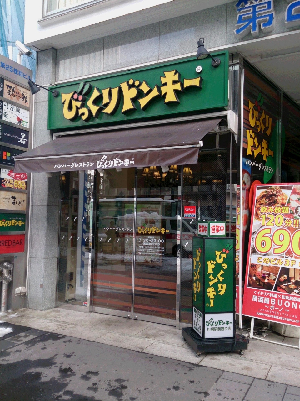札幌駅前通りにあるびくドンです。びっくりドンキー略してびくドン。ここは、その店店によって味が微妙に違います。ここは比較的、薄味ですね。オフィース街で、若者が少ないからかもしれません。それでも、ホッとするおいしさですね。値段も手ごろで助かります。