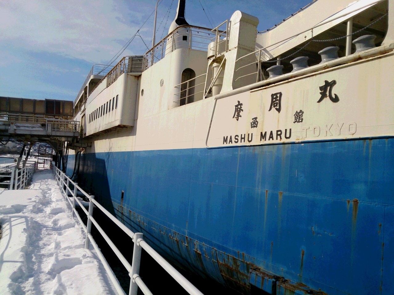 1988年3月13日の最後まで運行していた摩周丸。今も第2岸壁に係留されています。前のほうのグリーン席が展示室になっていてパネルや映像で青函連絡船の歴史が分かります。また、操舵室や通信室も見ることができます。3階のサロンでは、ケーキやカレーライスをいただくことができますが、名物の塩ラーメンがないのが少し寂しいです。入館料は、大人500円、小中高生250円、幼児は無料です。営業時間は、月によって違うのでホームページなどで調べてから行くのが良いでしょう。