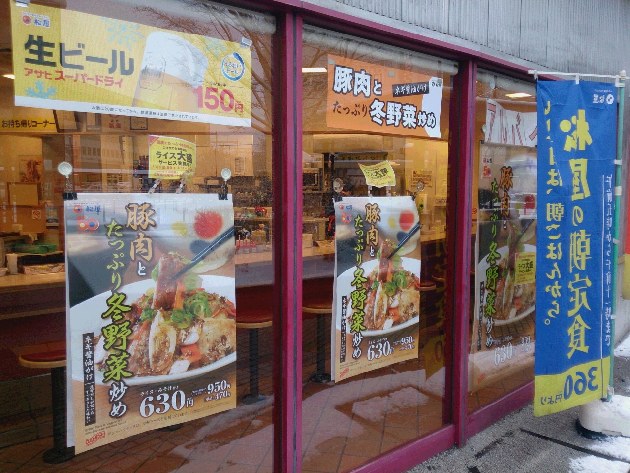 普段は牛めしをいただくのですが、最近はビールが飲めるお店もあります。盛岡の駅前で見つけた松屋さんもビールがありました。何か食べに行く前に少しの見たいときには最高です。安いし早い。メニューもそこそこ多い。ランチだけでなくちょい飲みも庶民の見方ですね。