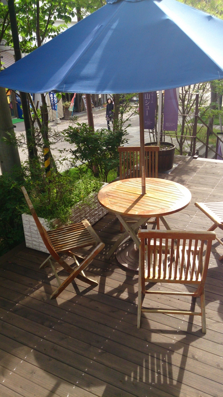 今年できたばかりの屋外カフェです。人気の高級ホテルが作ったカフェですが、値段は、名物千歳バーガーが880円、コーヒー、ジュース、緑茶などの飲み物が150円と安いです。ただし、近くにカラスが多く食べ物を横取りされたり、威嚇されたりします。それでも、天気の良い日は、気持ちよく、宿泊しなくてもお茶だけでも楽しみたいカフェです。