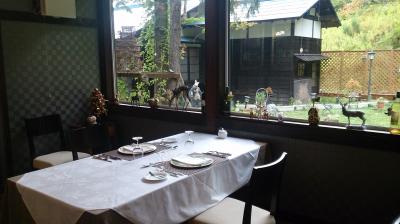 夕張市鹿ノ谷にあるレストランとオーベルジュです。部屋は3つしかないです。泊ったのはそのうちの一つですが、天井は高く部屋は広いのですが、ソファーとかテレビが幅をとっていて、広いと言う感じはあまりしなかったです。お風呂は檜の温泉でたいへん気持ちよかったです。食事は、一度外に出て行かなければなりませんが、野菜の素材を生かした、たいへんおいしいフレンチでした。大正時代にタイムスリップした感じが味わえたいへんのんびりとした時間を過ごす事ができました。