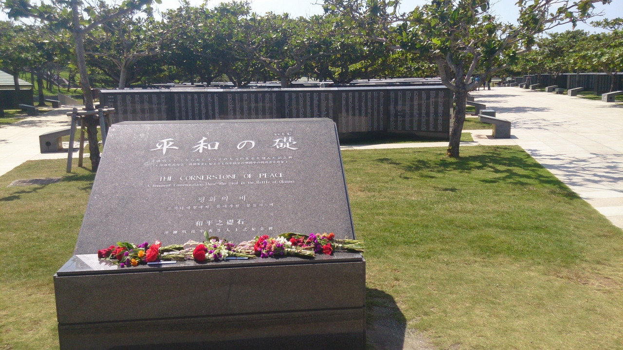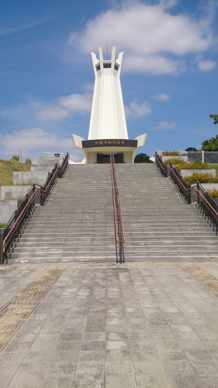 青い美しい海を臨む公園。この海をかがめるように並ぶ礎。多くの人が、この海に身を投じていったといいます。ここに来ると身が引き締まる思いです。なぜ、安保法案を進める政治家は、反対する沖縄の人を批判する前に、ここにきて話を聞くべく出はないでしょうか。にここは沖縄戦終焉の地、戦後70年の節目の年に、改めて戦争放棄、平和の尊さを感じました。