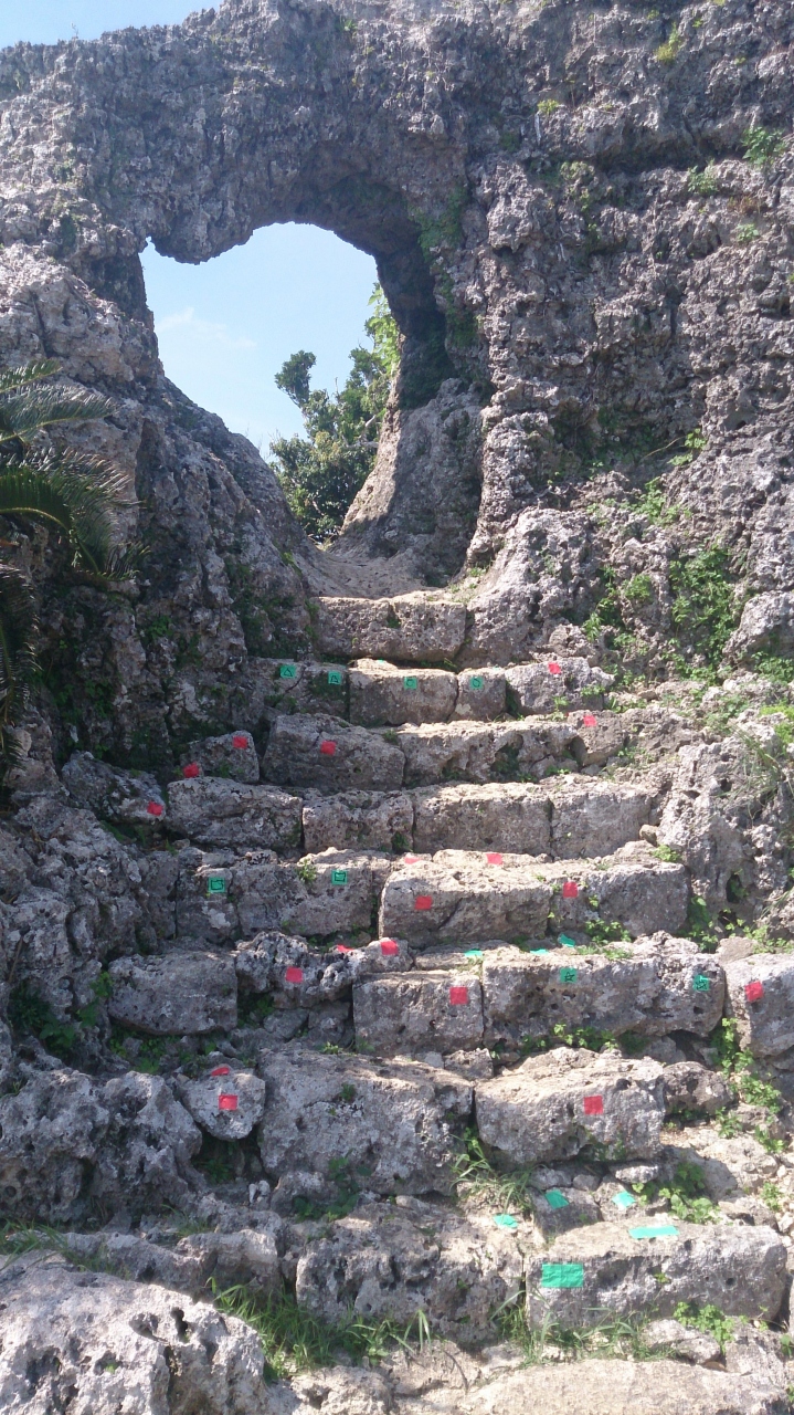 琉球国土創設の女神、アマミキヨが築いた城であるという伝説が残るのが、この玉城です。築城年代や歴代城主は定かではありません。南城市玉城の中心部から少し外れたところにあります。城跡までは、木でできた階段を上がらなければなりません。そこからまだ、急な坂を上がらなければなりません。この城跡は、一の郭、二の郭、三の郭と三つの