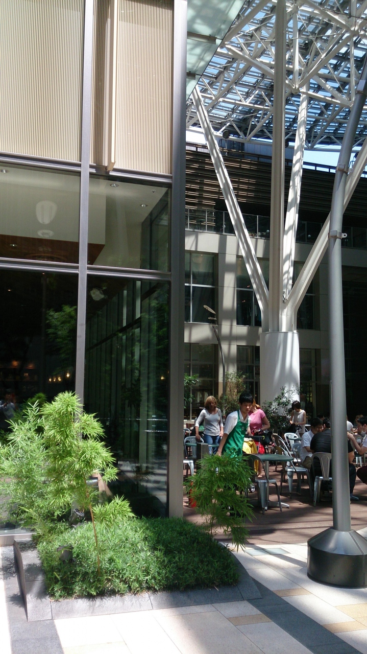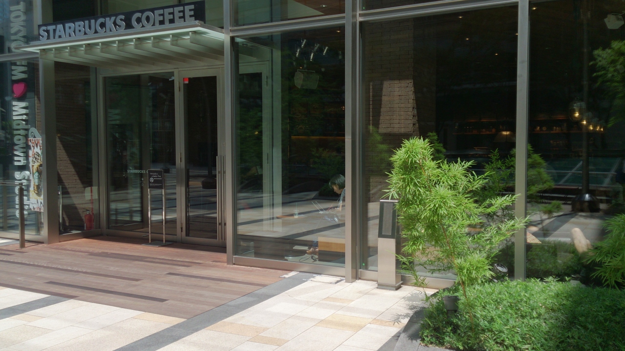 ミッドタウンの1階、都営大江戸線の8番出口のすぐ上にあります。ここにはテラス席があってここでお茶を飲むのが最高です。ここのスタバは、少し雰囲気が違いますね。テラス席ですが、ミッドタウンの屋根があるので雨の日で大丈夫です。スズメも飛んできてスコーンをおねだりします。今の季節は、テラス席で飲むコーヒーが一番おいしい季節。毎回ワクワクしながら、ここでお茶しています。月から木と日曜日・祝祭日が、午前7時から午後11時目で。金・土が午前7時から、深夜の12時までです。気持ちよくお茶が飲めます。