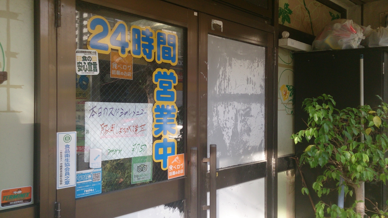 ゆいレールの旭橋駅から歩いて10分ほどのところにある食堂です。24時間、年中無休の食堂です。沖縄にしたら値段は、少し高めかな。でも、味もいいし、ボリュームもあるしまずまずです。沖縄でチャンポンとは、チャンプルをご飯の上に乗せたものをいうのかな?長崎のチャンポンをイメージすると全然違うものが出てくるので注意です。